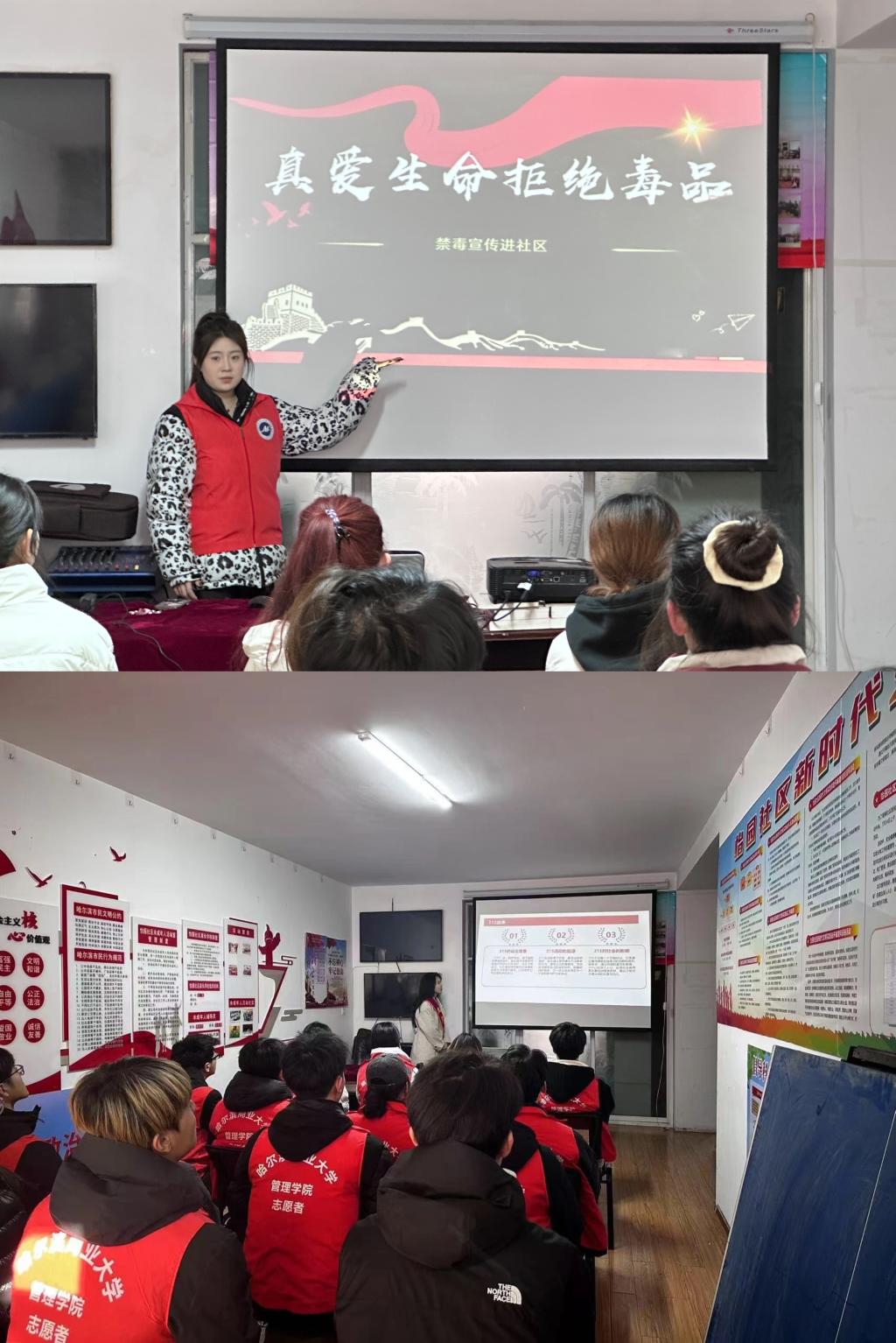 在世界水日,学院组织开展了“青年志愿 生态龙江”海报设计活动。将环保元素融入海报设计,并通过讲座和宣传活动,向师生普及节水知识和环保理念,有效增强了环保意识。学院与怡园社区合作,开展了“宣传普法进社区·禁毒知识入民心”活动,志愿者们深入社区,向居民发放禁毒和法律宣传手册,结合案例分析讲解毒品的危害及相关法律知识,营造了良好的法治和禁毒氛围。