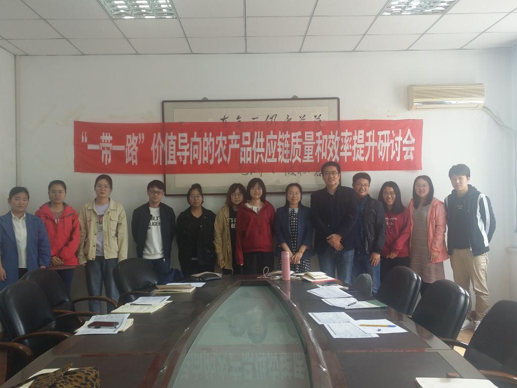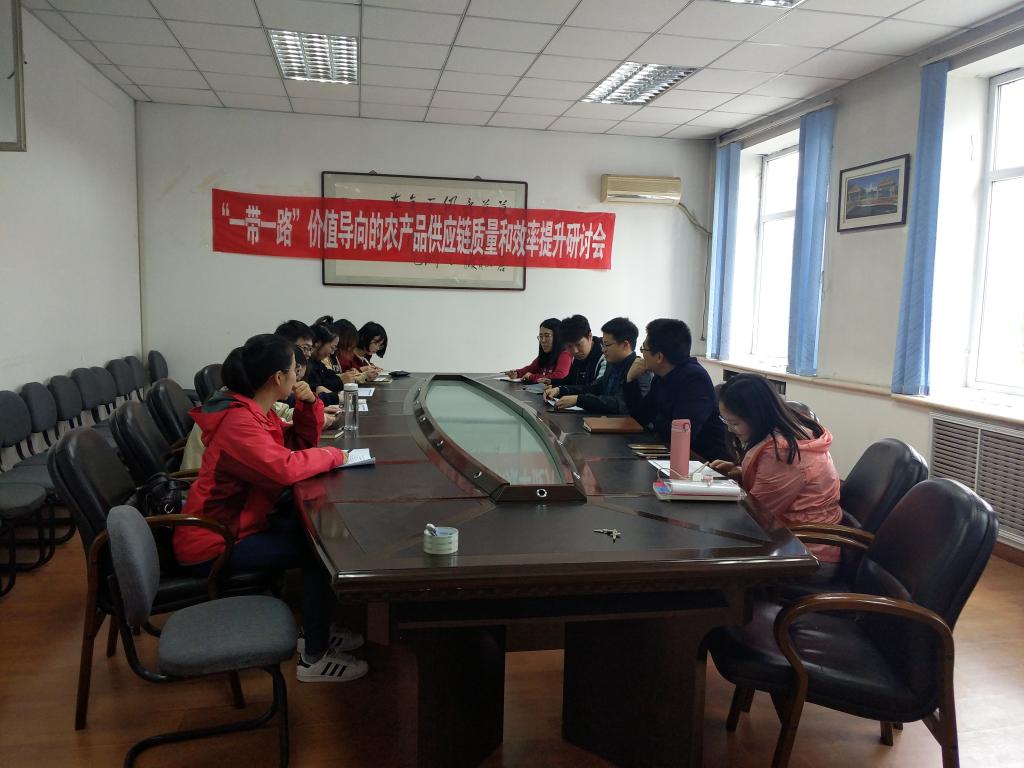 参会人员主要包括管理学院老师、博士研究生与硕士研究生。会议由魏胜老师主持,会上,老师与学生就“一带一路”价值导向的内涵、意义、农产品供应链的发展现状、农产品供应链质量和效率发展时遇到的问题与挑战以及应对措施等进行深入地交流和讨论。