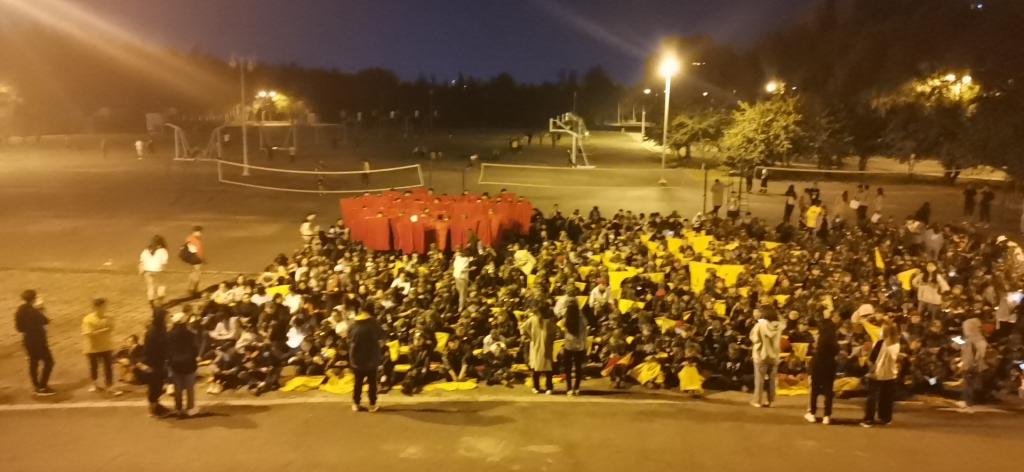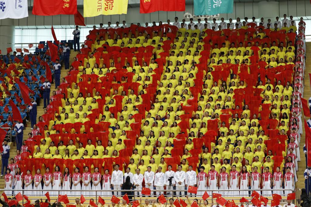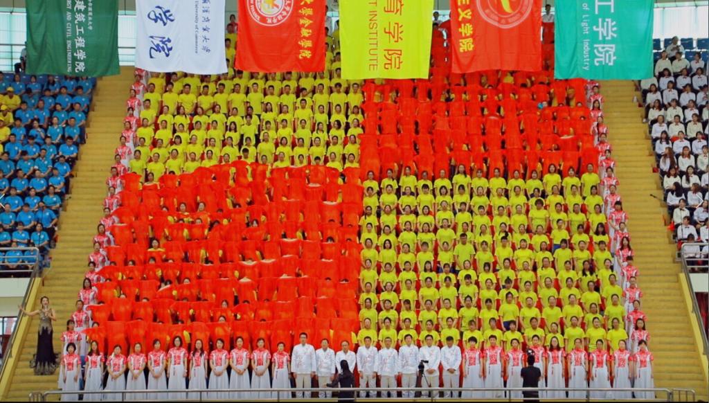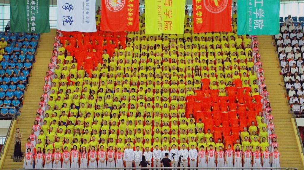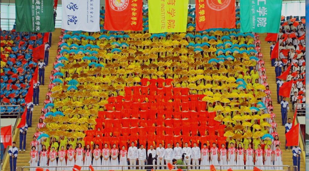 管理学院与会计学院组成师生合唱方阵9月25日14时正式展演,我们联合方阵通过各种道具变换出了数种图案,表达对祖国的深情热爱,一阵阵动人的歌声荡气回肠,一曲曲激动的旋律引人入胜,震撼的音韵伴随着飘扬的国旗,在同学们心中留下了深深的烙印,传递着与国家同在的深厚情怀,激励着广大师生不忘初心、牢记使命。
