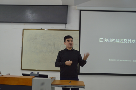 唐文奇从区块链的产生和发展讲起,讲到区块链未来可应用的行业,给老师和同学们极大的启示。