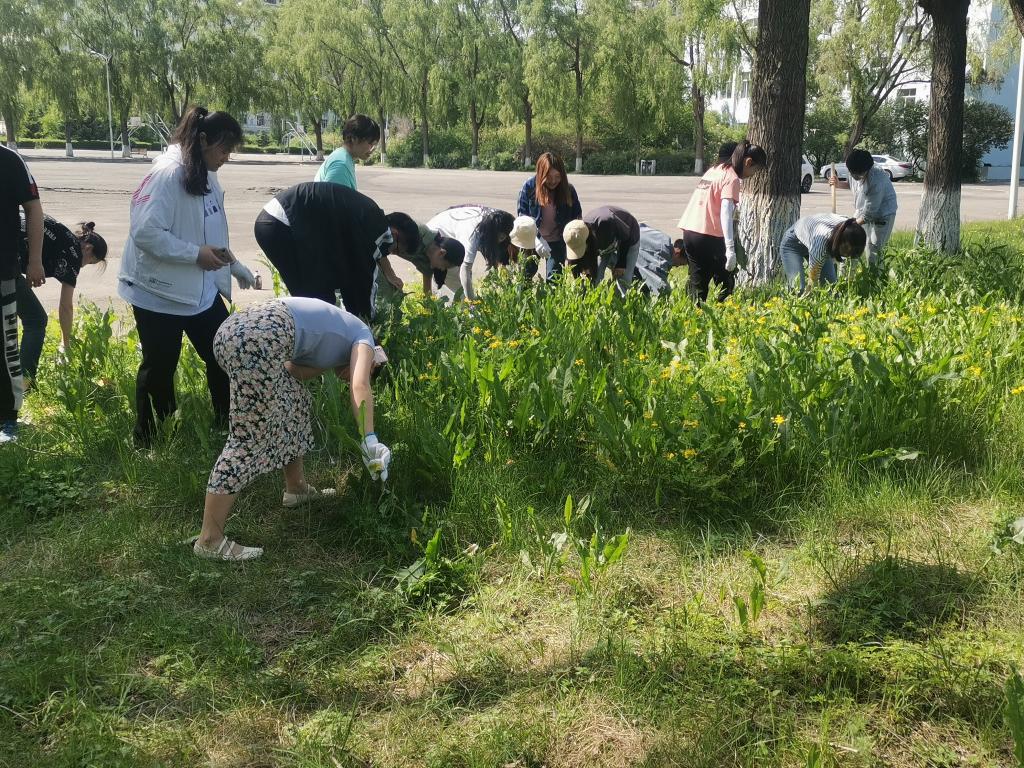 本次志愿服务活动,师生党员对西区校园内杂草进行清理,全体师生党员党员携带铁锹、手套、垃圾袋等工具、顶着烈日,发扬不怕脏、不怕累的优良作风和团结协作的精神,对指定的区域进行集中清理,将杂草聚集成堆,集中处理,整个志愿服务于过程中呈现出一派忙碌的景象,清理后的西区校园环境面貌得到明显改善。
