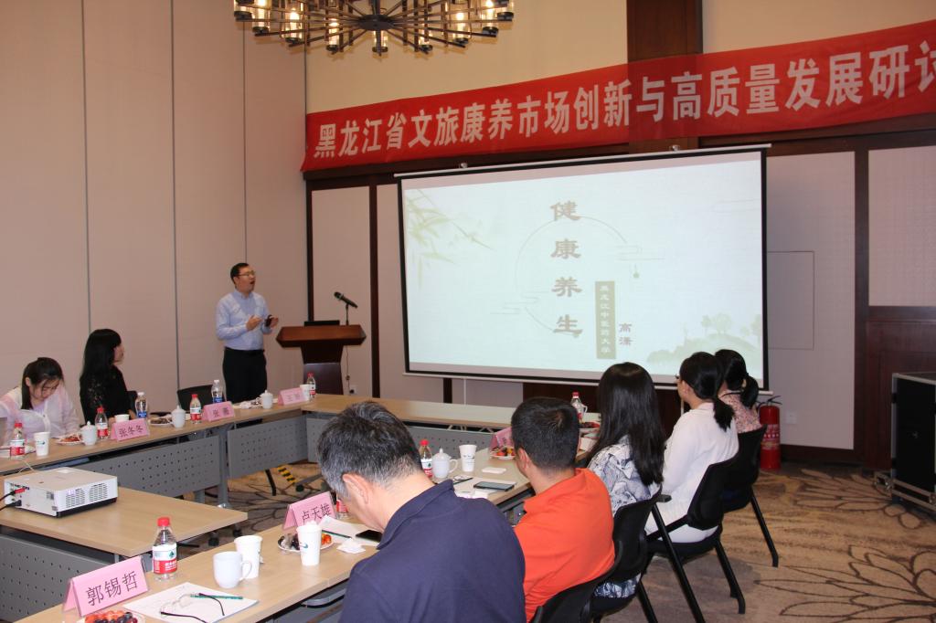 黑龙江省科技经济顾问委员会商贸流通专家组成员王洪宝先生,在会上分析了我国文旅康养目标市场结构、文化旅游康养发展模式及存在的问题。同时,王洪宝阐述了文化、旅游和康养的文化属性和引领作用。