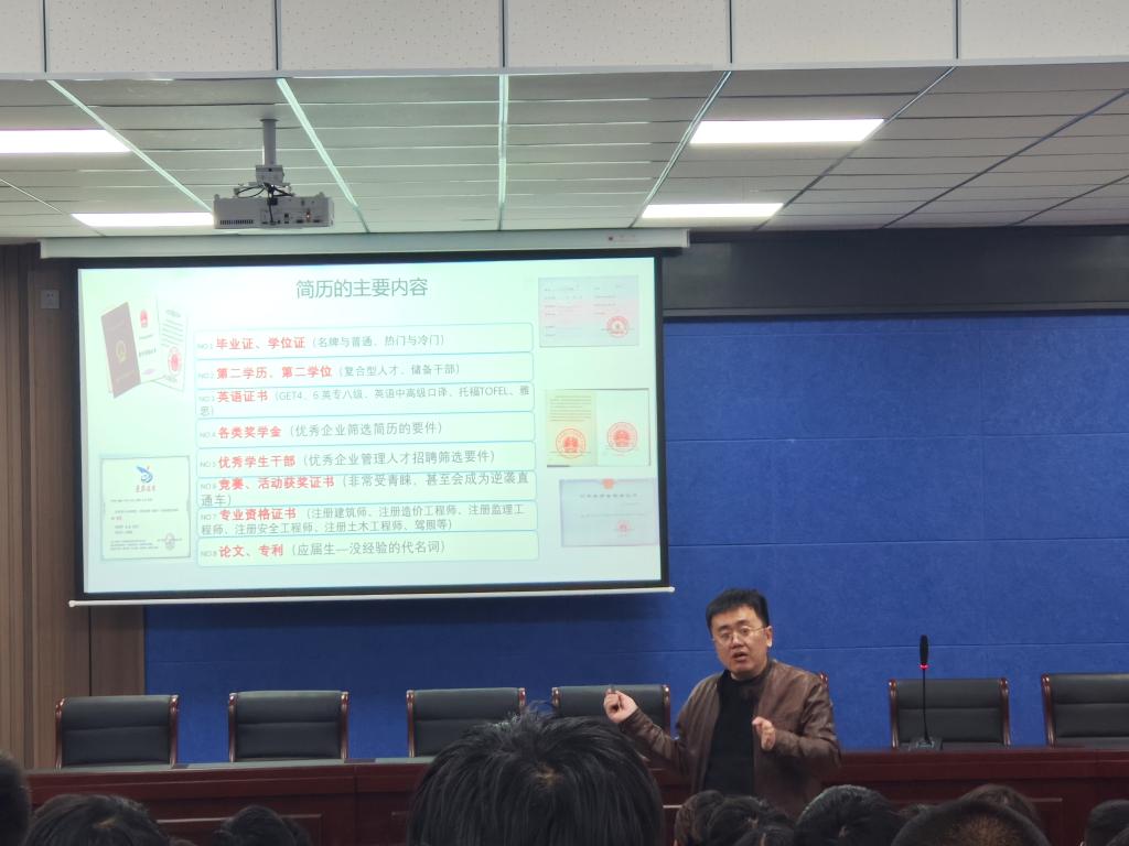 两位老师分别从“高质量就业”“自主创业”“助力考研”和“助考公务员”四个模块进行指导。通过分析历年考研数据以及当今企业对不同专业人才的需求及就业情况,让同学们对自己专业在未来所拥有的选择初步建立较为系统的认知。