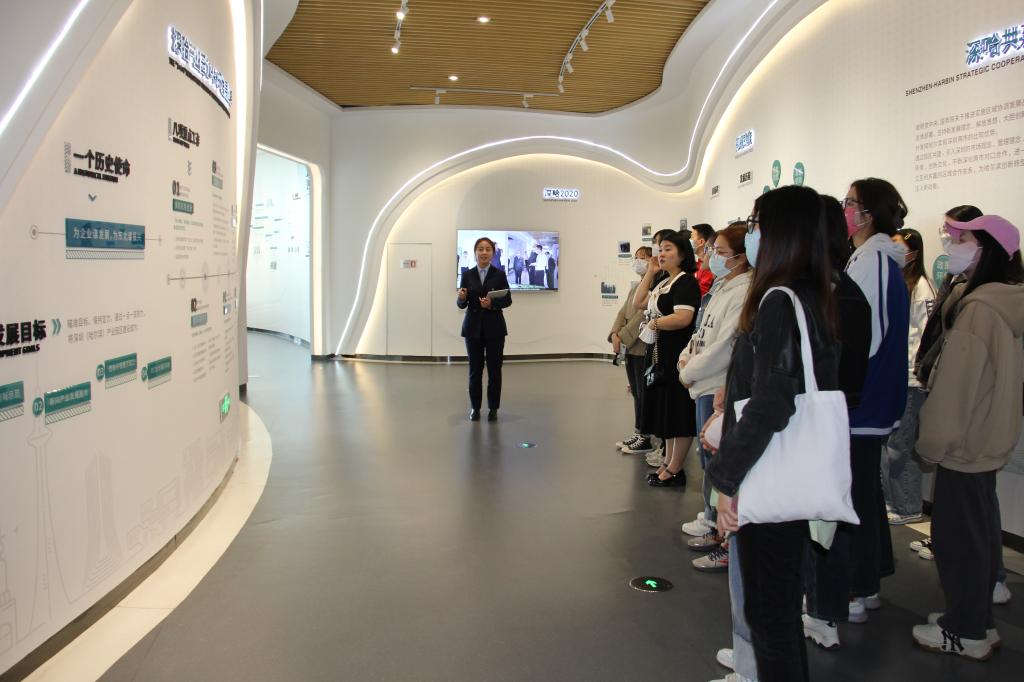 师生党员在讲解员的引领下参观深哈产业园综合展览中心,通过讲解员的讲解对产业园的合作背景、园区使命与目标、基本情况、园区规划、建设进展、创新政策、产业发展情况、运营服务体系、入驻企业情况进行了解,同时对哈尔滨城市未来规划建设有了更加深刻的认识,纷纷表示希望在未来的工作、学习过程中,能够围绕管理学院在大数据、供应链、物流等方面的学科优势,将供应链资源流集成创新理论应用于龙江现代物流业,推进龙江高端服务业的产业链供应链融入新格局,实现产业链、创新链、供应链、价值链“四链融合”,助力龙江经济高质量发展。