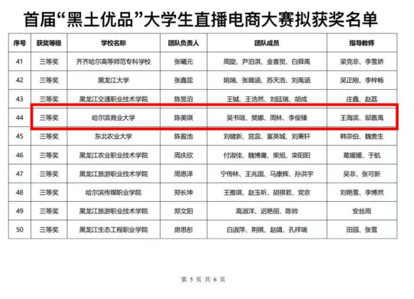 此次大赛不仅是对学生专业能力的检验,更是一场生动的“黑土情怀”教育实践。参赛团队以直播为媒介,用青年视角诠释龙江农产品的独特魅力,用创新思维拓宽乡村振兴的实践路径。从校赛到省赛,参赛团队通力协作、反复打磨,在实战中提升了电商运营、团队协作与应变能力,更在服务地方经济中深化了扎根黑土、建设家乡的责任感。未来,管理学院将持续促进学生以专业为桨、以热情为帆,坚持实践探索,以创业精神不断突破自我,在数字经济浪潮中探索更多可能!