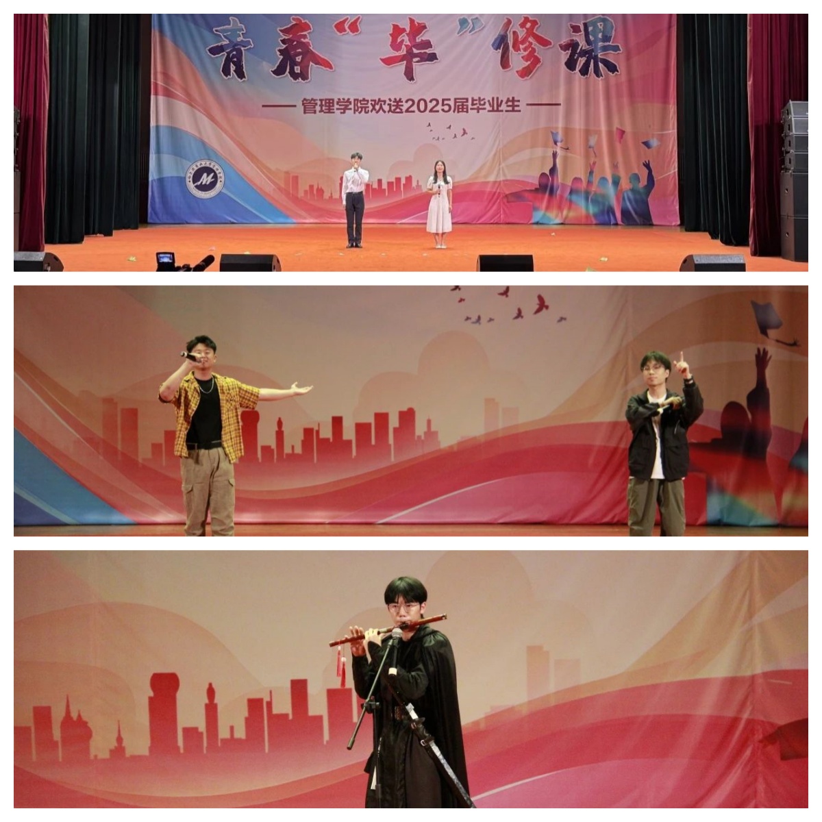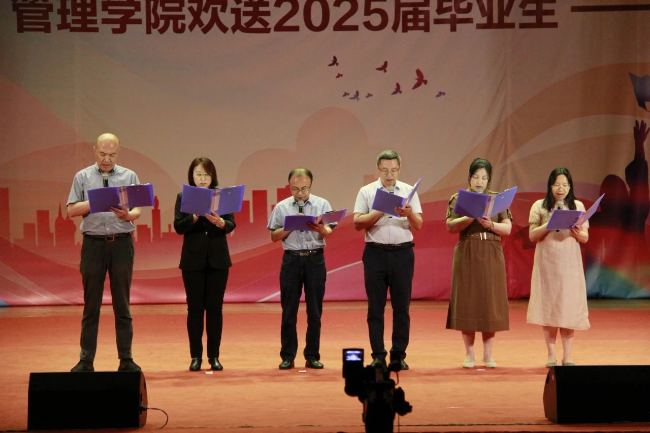 学院领导班子以深情朗诵为管院学子照亮逐梦之路;教师们或用歌声种下校园繁花记忆,或借三句半诙谐诉说四年温情;辅导员团队以联唱护航毕业生奔赴新程。愿这份来自管院大家庭的爱与期许,化作你们前行的底气。未来之路,或有风雨,或遇坦途,愿你们永葆初心,无畏挑战,在广阔天地间,书写属于自己的精彩篇章。