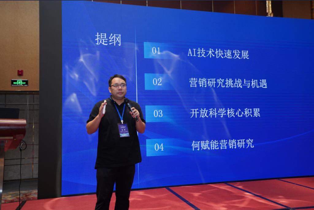 中央财经大学副教授、Credamo见数创始人姚凯副教授带来《AI 时代开放科学如何赋能营销研究》,提出版权归属问题、研究效率等营销研究挑战,分析开放科学中广泛的样本库覆盖、多期追踪调查等核心问题,以及探讨人工智能时代开放科学对营销研究的赋能路径。