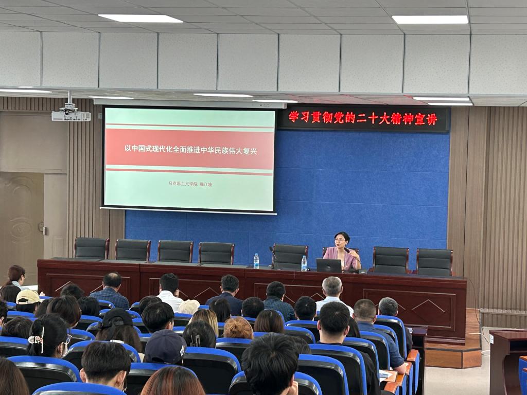 为推动学习贯彻习近平新时代中国特色社会主义思想主题教育深入开展,巩固党的二十大精神学习成果,2023年5月31日马克思主义学院副院长陈江波教授为管理学院、财政学院师生党员作题为《以中国式现代化全面推进中华民族伟大复兴》专题讲座,讲座由管理学院党委书记赵国军主持。